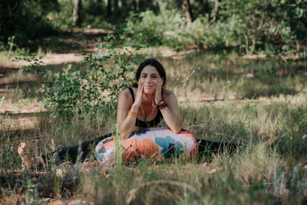 Le principe : Assis(e) au sol, écartez les jambes en V. Laissez le buste plonger vers l’avant. N’hésitez pas à poser votre front sur un gros coussin (bolster) pour un relâchement total. Une couverture roulée sous les fesses peut également vous aider à basculer le bassin.
